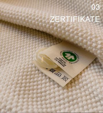 KbT stands for controlled organic livestock farming. As with organic cotton, controlled organic livestock farming primarily means the elimination of chemicals throughout the entire production cycle. This means that no pesticides are used on the sheep or on the pastures on which the sheep graze. The animals' resistance to parasite infestation is achieved through the cycle of healthy soil and healthy animals. This eliminates the need for preventative chemical pest control. Organic farming also includes species -appropriate animal husbandry and feeding, as well as the avoidance of fattening aids . Another important point is that the painful mulesing process is avoided. In order to prevent fly strike, large pieces of skin and meat are often removed from the thighs and tails of young Merino lambs without anesthesia.