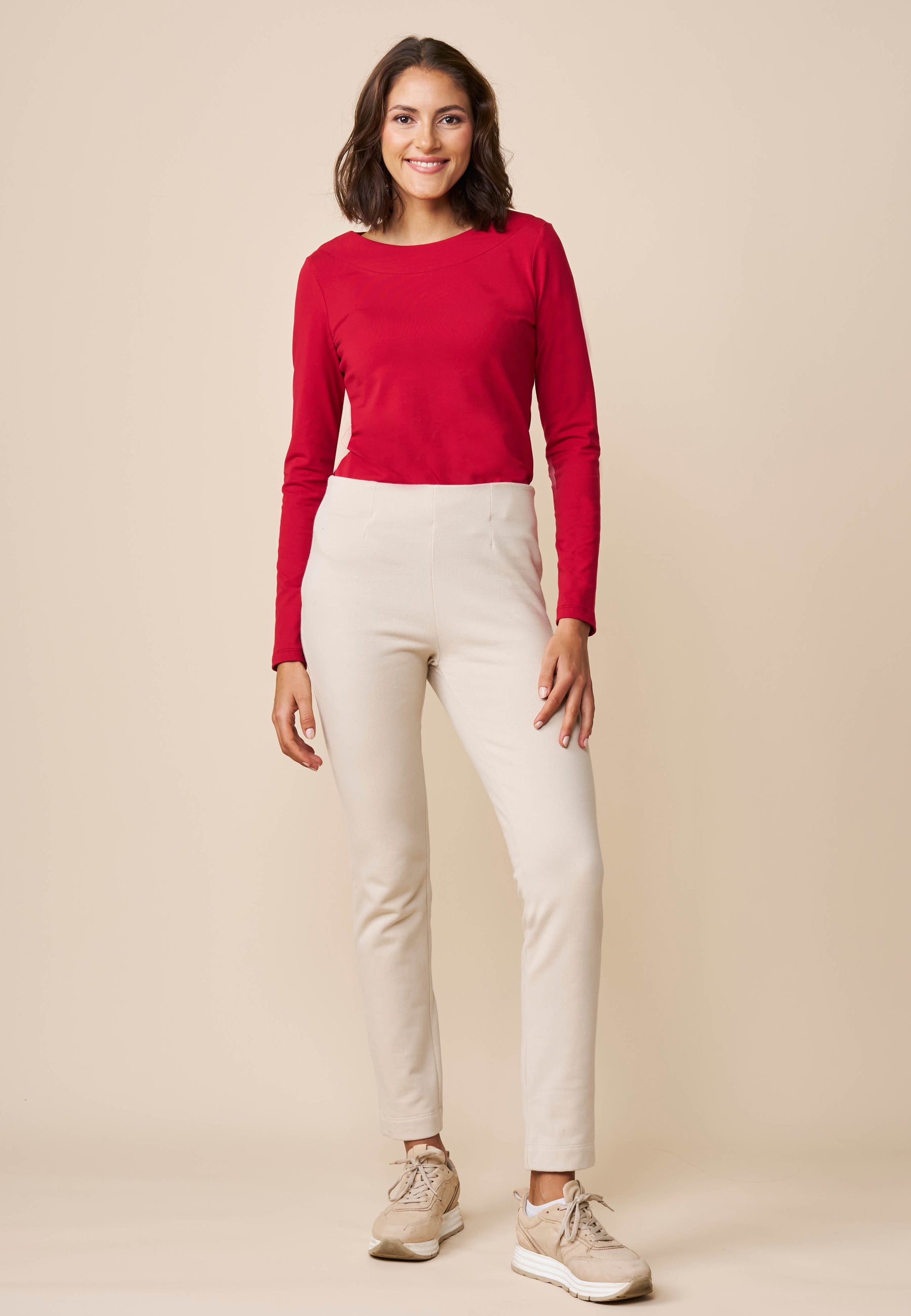 GOTS zertifiziert und gefertigt aus 95 % Bio-Baumwolle aus kontrolliert biologischem Anbau und 5 % Elasthan ist sie der ideale Begleiter für die kommende Saison.