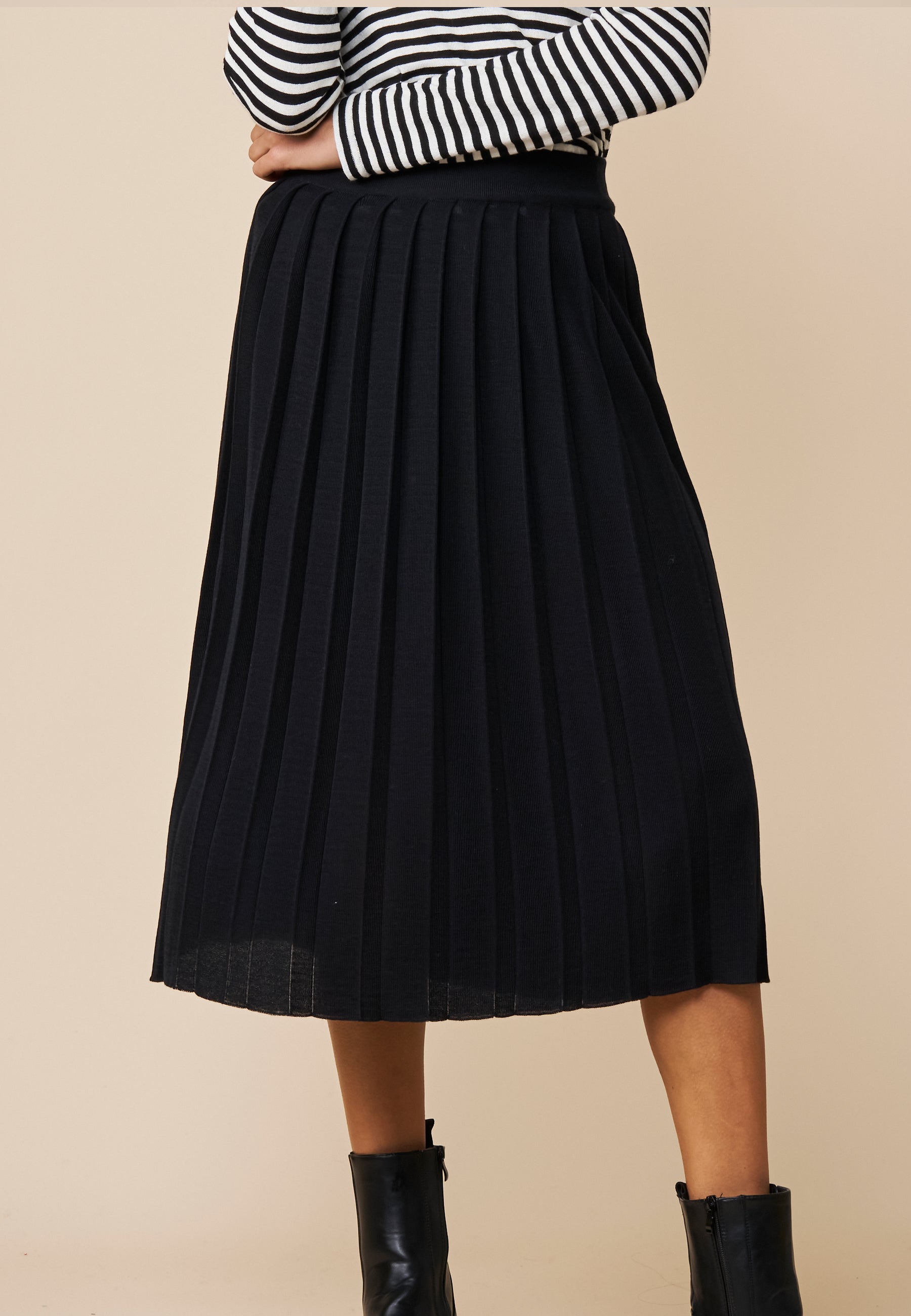 Ein Rock für besondere Augenblicke...midilang mit viel schwingender Saumweite durch die aufspringenden, gestrickten Falten. Der elastische Taillenbund sorgt für Tragekomfort.